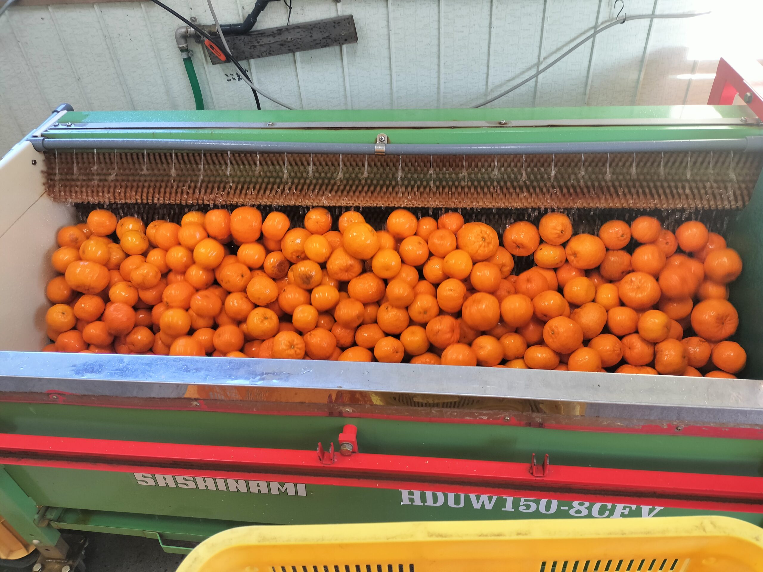 ポンカンジュースを搾る前日の、ポンカンを洗っている様子です。