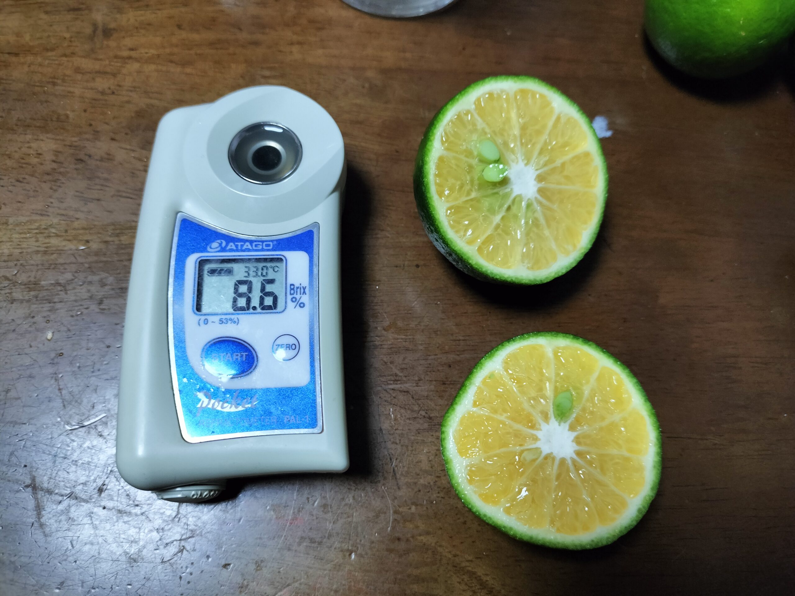 青ポンカンの糖度と色です。少し黄色くなってきています。