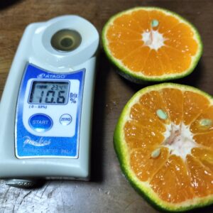 本日11月13日の、青ポンカンの糖度です。すごく高くなってきました。