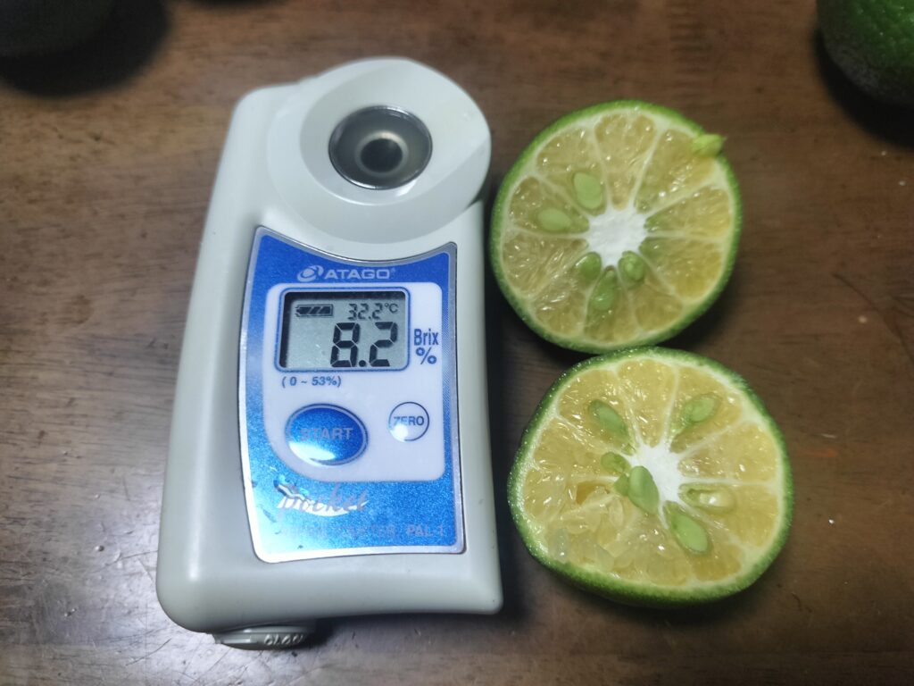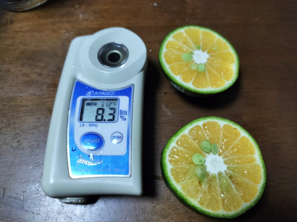青ポンカンの糖度と色です。少し黄色くなってきています。